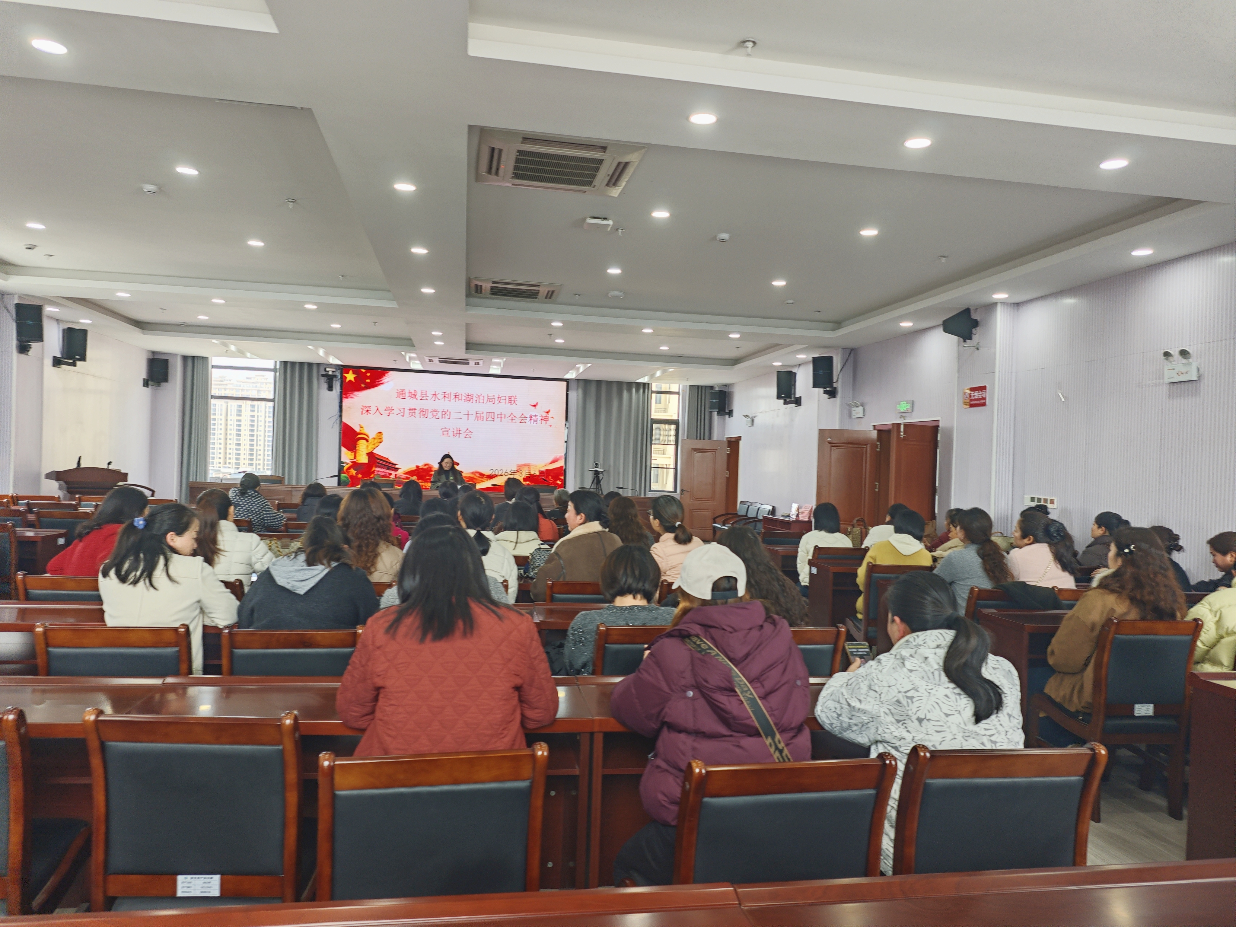 洁河行动结束后,县水利和湖泊局组织全体女职工集中开展理论学习,重点围绕党的二十届四中全会精神进行深入学习。宣讲人员从全会精神的时代背景、丰富内涵和实践要求出发,结合水利工作实际进行了系统解读,引导大家进一步筑牢思想根基,提高政治站位,增强干事创业的内生动力。学习现场气氛热烈,大家认真聆听、积极交流,纷纷表示要以全会精神为指引,立足岗位、勇担使命,努力在推动水利事业高质量发展中展现更大作为。