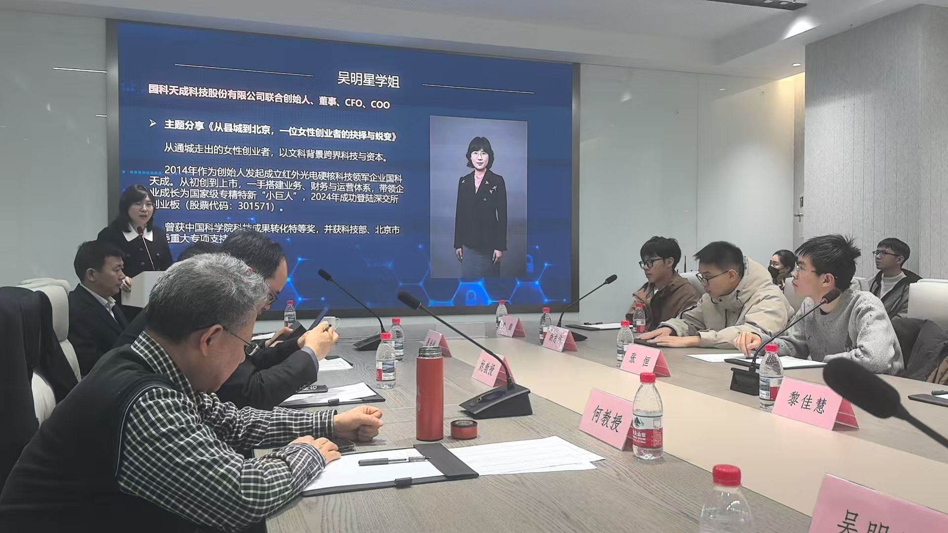 恳谈会上,北京市通城商会会长李松年致欢迎辞,表示商会将一如既往关心支持通城在京学子,把服务青年成长、助力家乡人才发展作为重点工作持续推进。国科天成科技股份有限公司联合创始人、董事吴明星以《从县城到北京,一位女性创业者的抉择与蜕变》为题,分享了个人创业经历,勉励学子立足自身成长、锤炼过硬本领,未来学有所成、反哺桑梓,积极为家乡发展贡献智慧与力量。中国农业大学何雄奎教授、北京理工大学姚长江教授以学者与家乡人的双重身份,传递“从通城出发,向世界发光”的信念。共青团通城县委相关负责人为吴明星颁发爱心牌匾,感谢她长期以来对家乡“希望工程”工作的关心与支持。