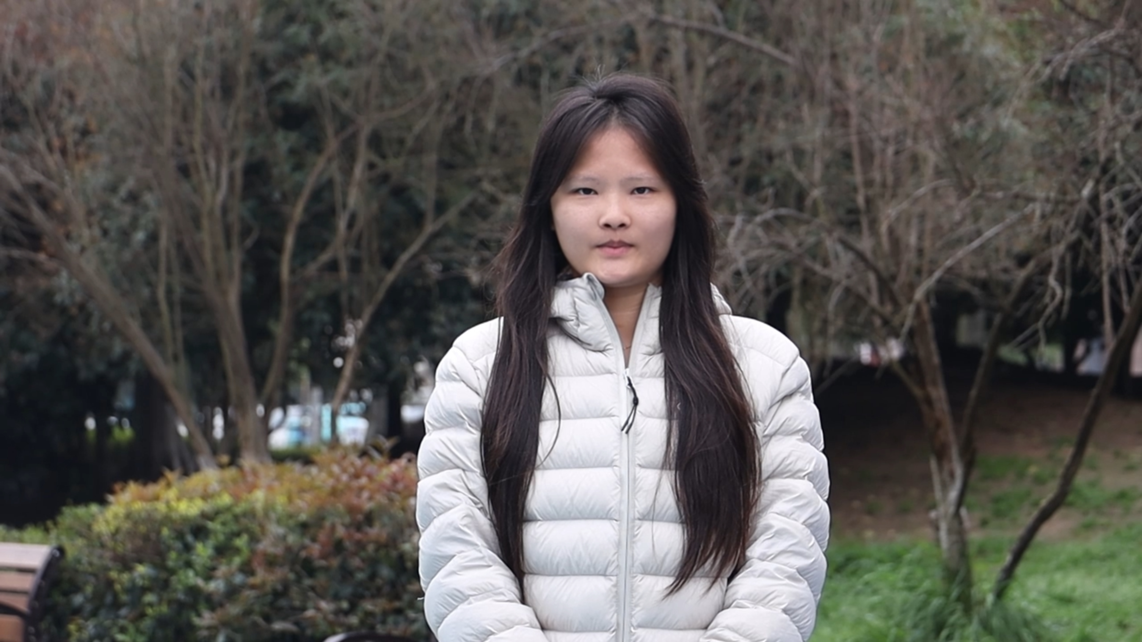 居民 熊碧雯:最近一直在下雨,趁着今天天晴来广场赏一下花,呼吸一下新鲜空气。