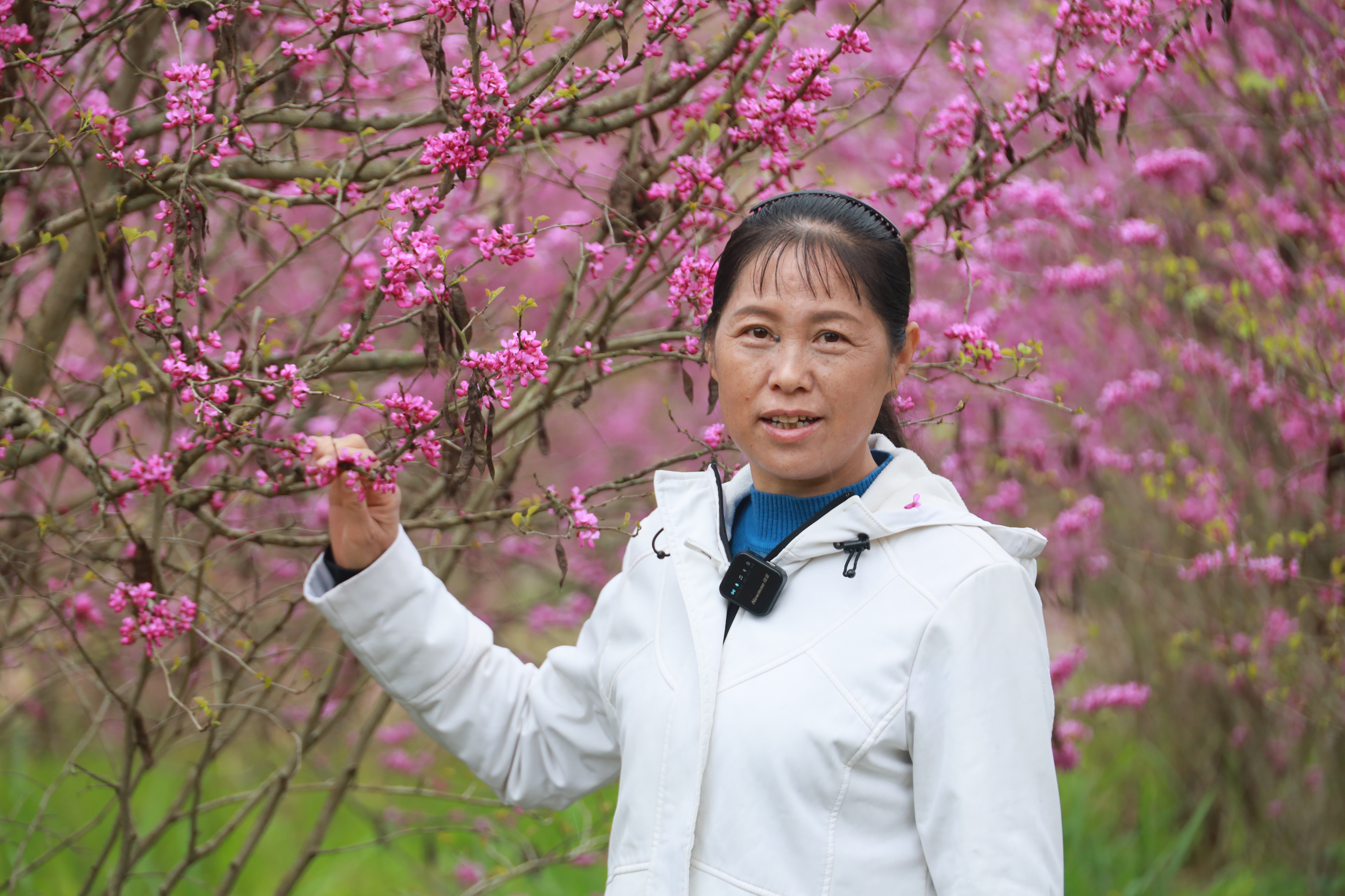 游客 刘艳辉:今天的天气还可以,我和朋友一起游玩,走到知青庄园,看到知青庄园的紫荆花好漂亮,这里的空气都是香的,非常适合拍照、打卡,喜欢出来春游的可以到知青庄园来赏紫荆花。