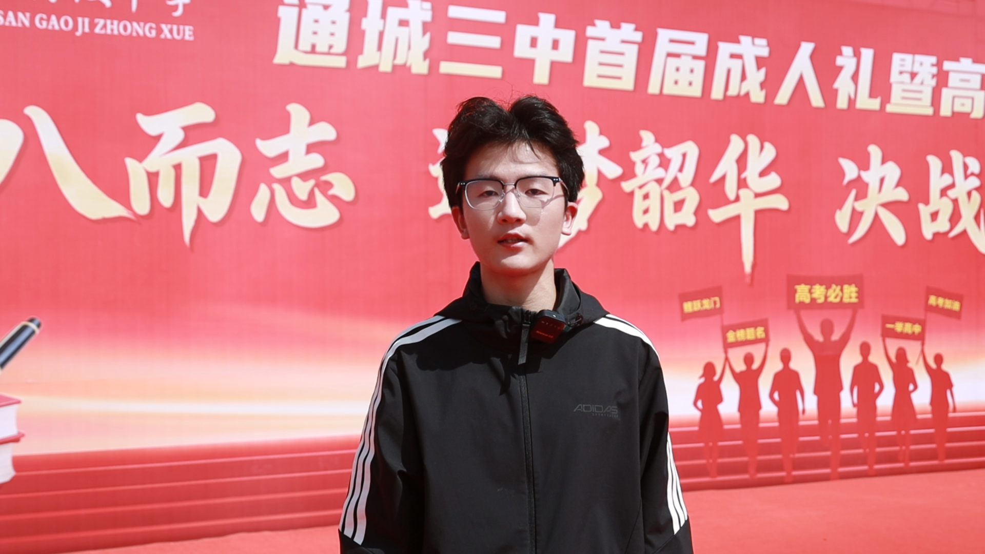 通城三中高三学生 葛文强:我非常感谢我的妈妈和奶奶能够来参加我的成年礼,我和他们走过了责任门、追梦门、凯旋门,也非常感谢老师能够在课堂上给予我们知识。在接下来的高考六十天里,我祝所有三中高三学生高考大捷,考上自己理想的大学。