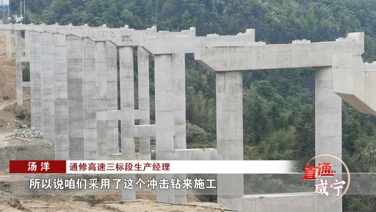 通修高速三标段生产经理 汤洋:花岗岩(硬度)达到80兆帕,所以说咱们采用了冲击钻来施工,修筑施工平台,挖运土石方,保证咱们的便道的贯通。