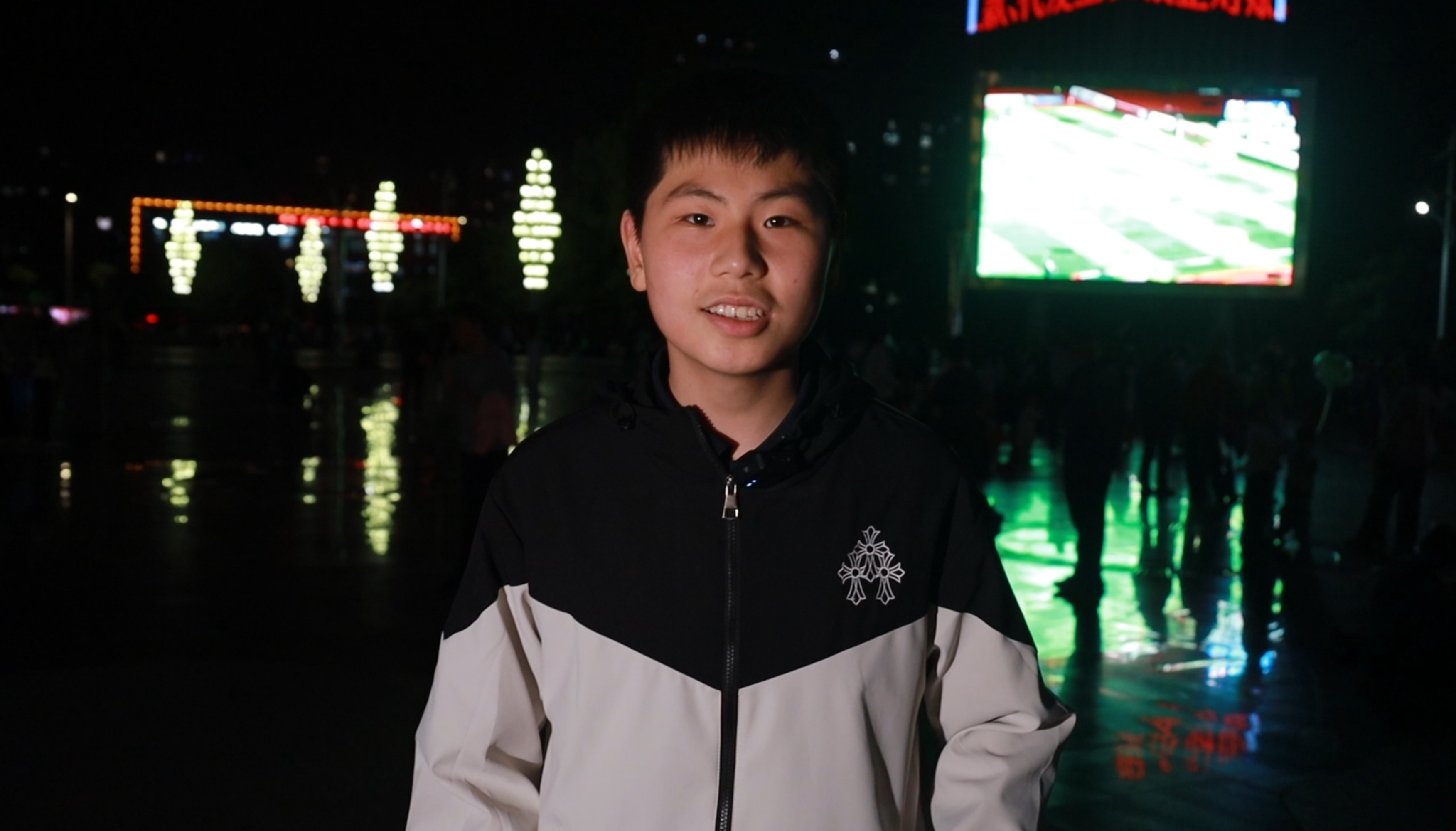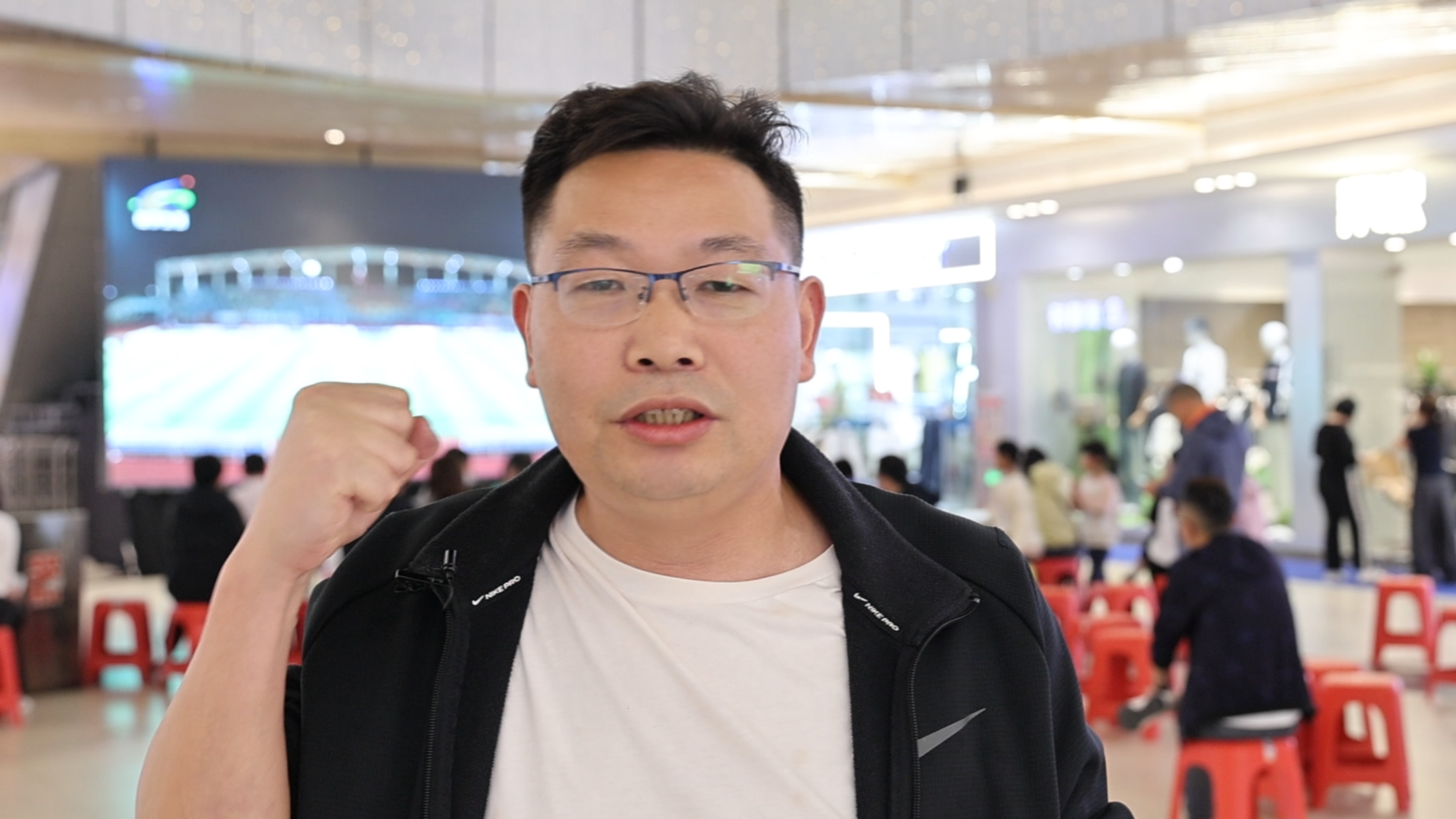 通城县球迷 罗启鸣:今天星期六虽然不能到现场看足球比赛,但银山广场氛围感很浓,这里特别多小吃,非常棒!