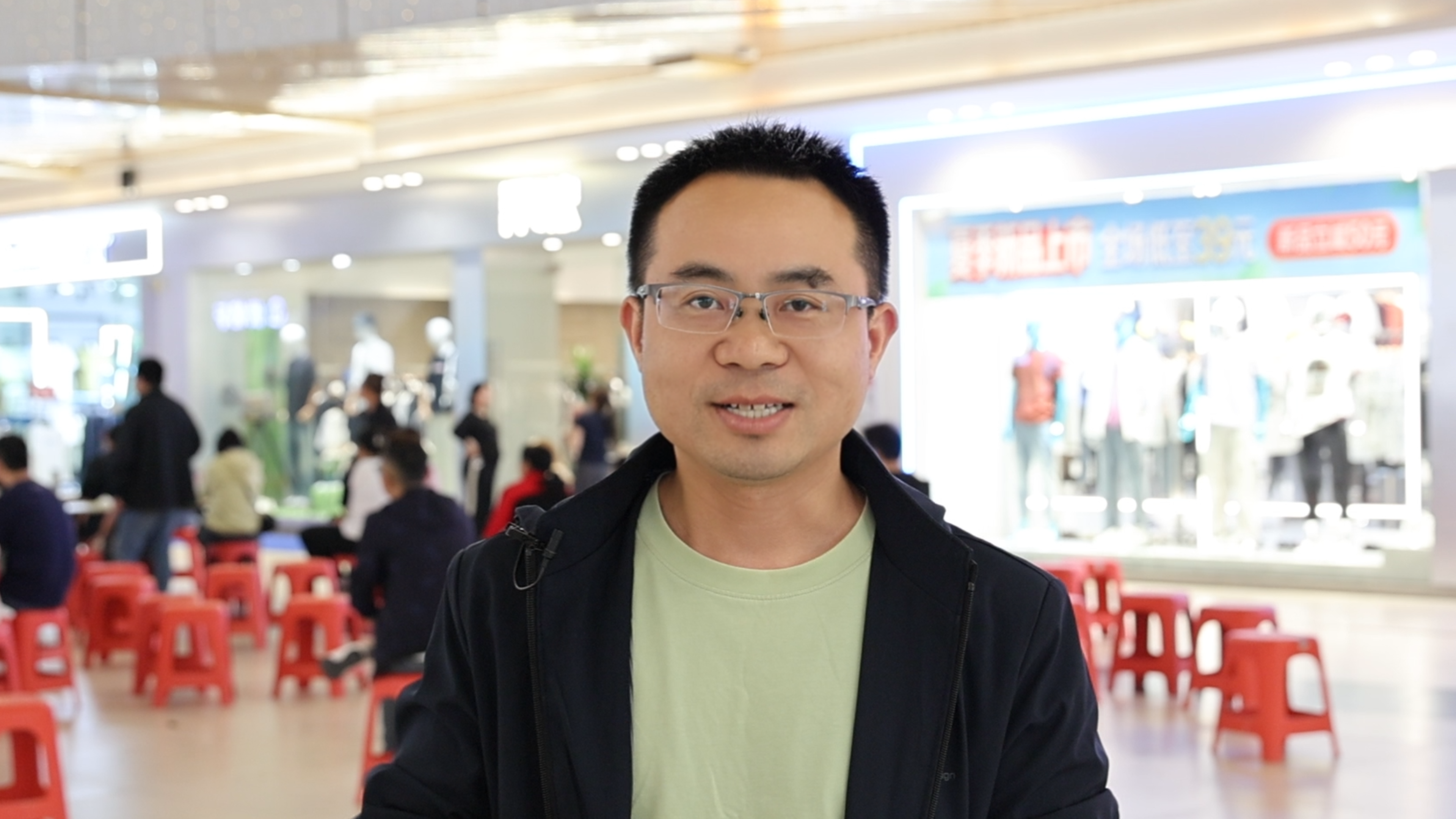 商户 易建曲:今天新广场举办农副产品展销,我们的产品卖得很好,观众也喜欢吃我们家的产品,受到了大家的欢迎。