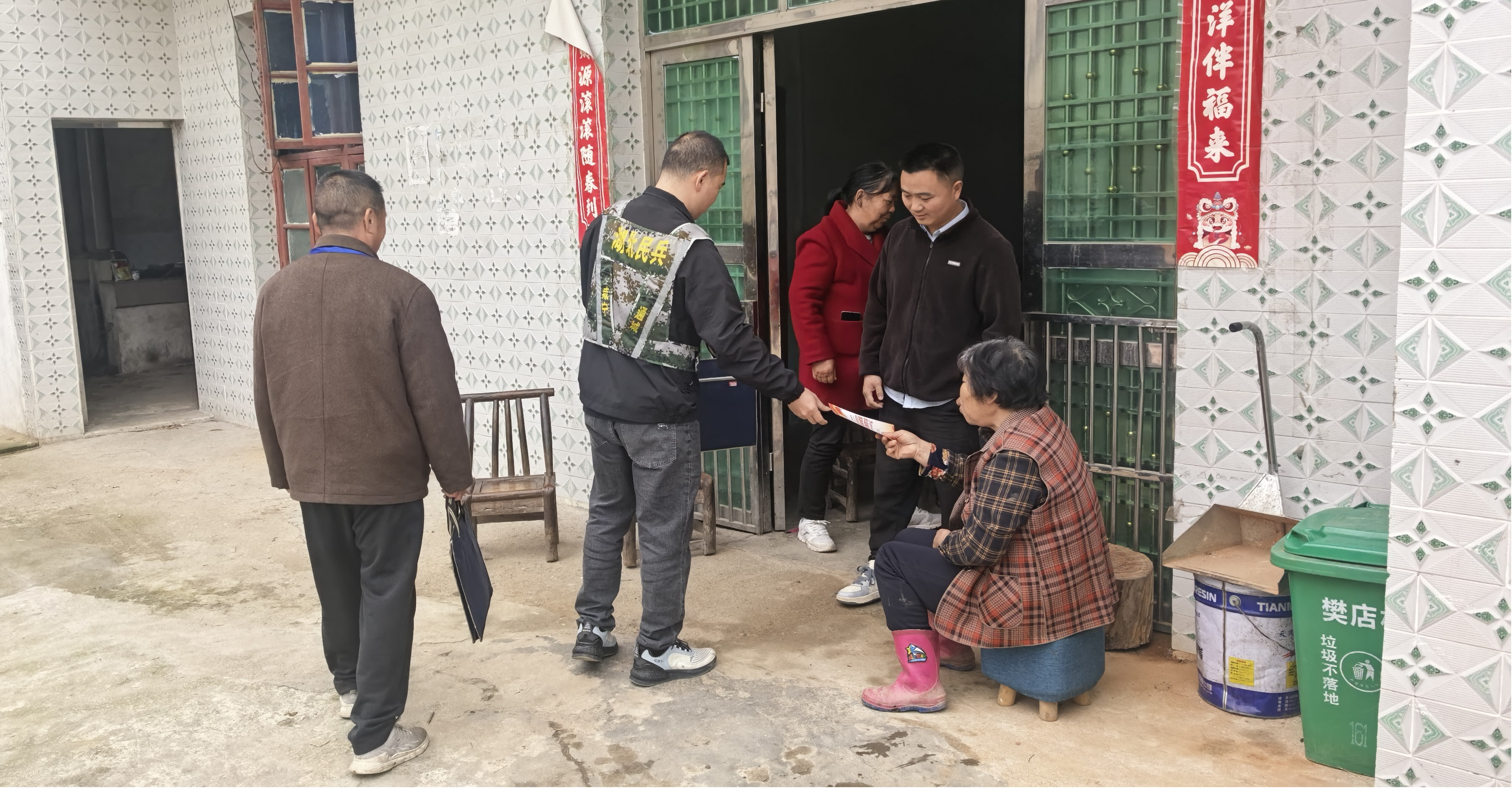 下午,黎刚和队员们一起走进樊店村第二十二组的5户农户家中。在困难群众黄从来家里,他自己动手帮着打扫了积尘已久的厨房卫生,又仔细检查了家中的煤气阀门和电路插座。临走时,还不忘把宣传单留在桌上,叮嘱两位老人留意电信诈骗。