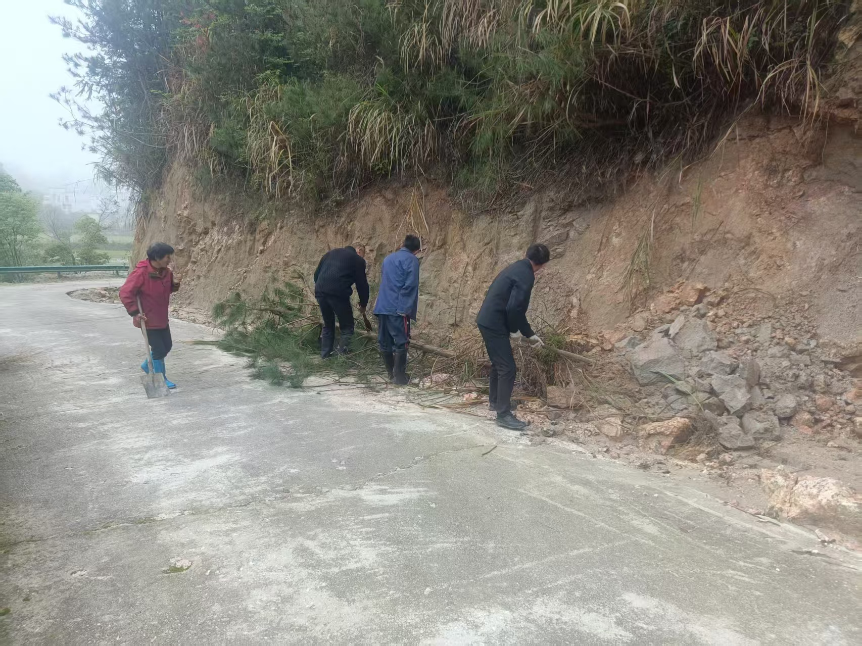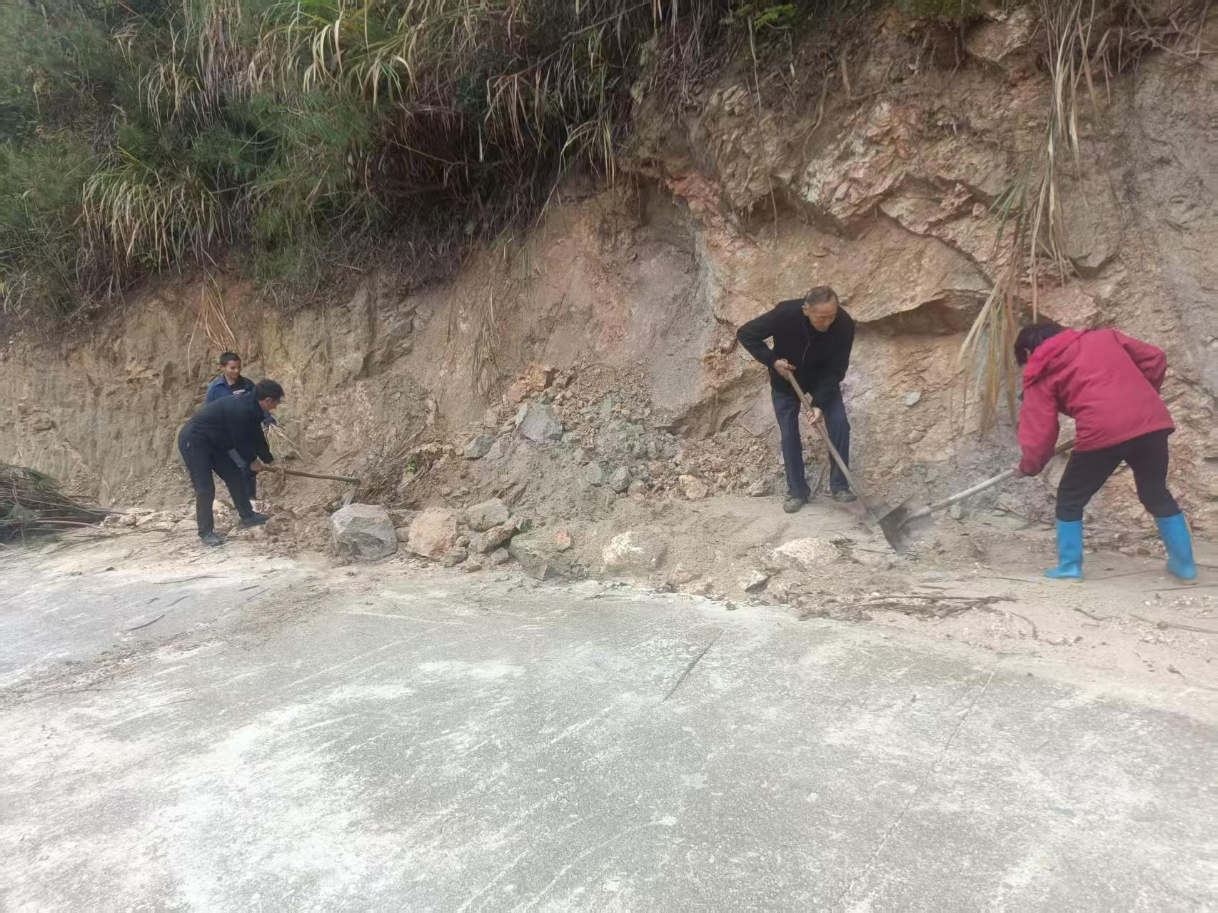 整治现场,工作人员手持铁锹、锄头、撬棍等工具,对道路边坡松动石块、堆积土方、倒伏树枝及杂草进行彻底清理,对易塌方路段进行加固处理,确保道路视线开阔、路面畅通。大家分工协作、干劲十足,有的清理落石土方,有的搬运枯枝杂物,有的平整路面,用实际行动消除安全隐患,改善道路环境。