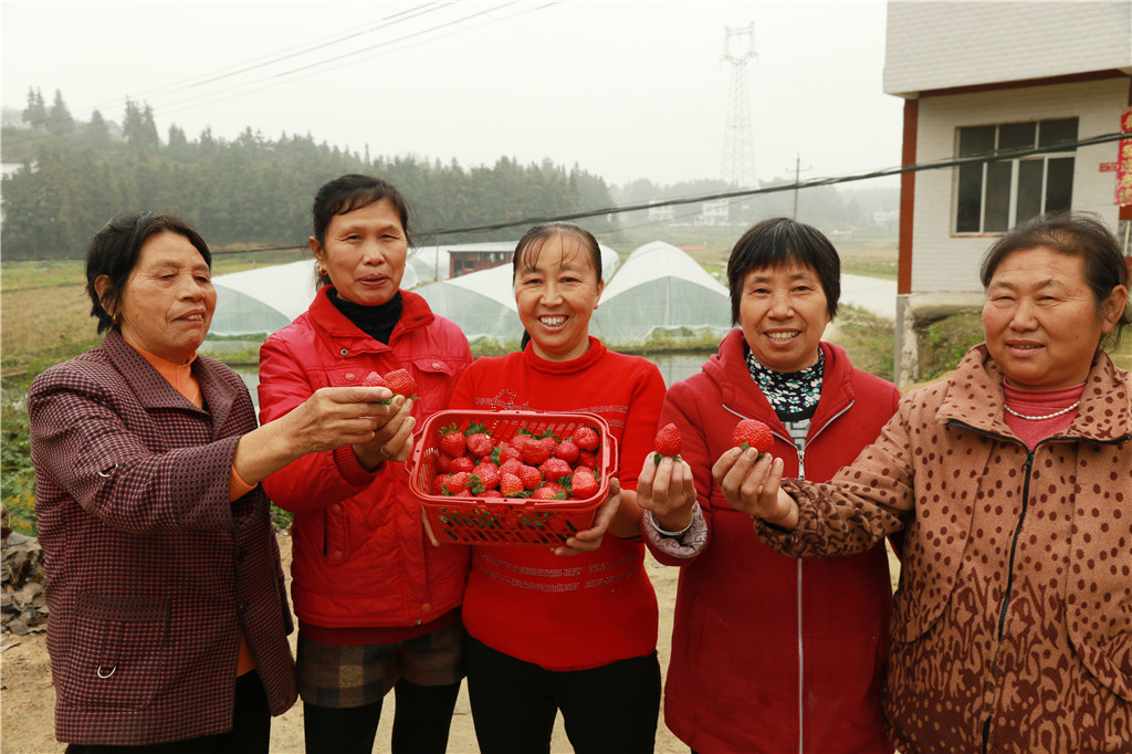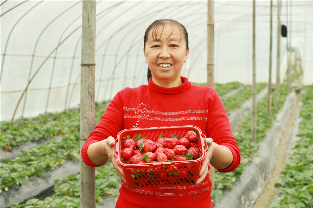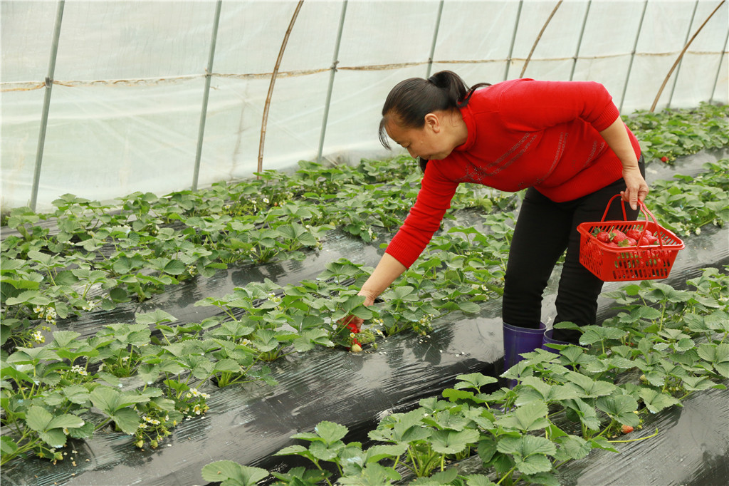 虽然下着绵绵不断的雨,但在隽水镇桃源村六组草莓种植户吴首强的温室大棚里,却是一派春意盎然的景象。