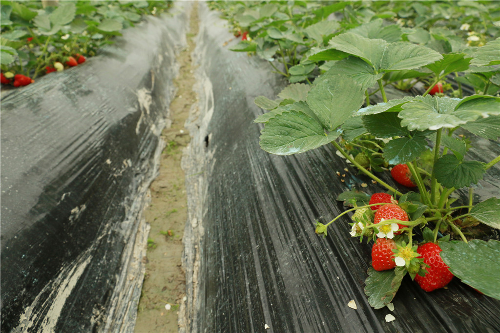 一行行成熟待采的草莓给寒冷的冬季添了不少春意。